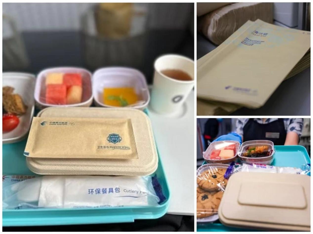 使用可降解材質制作的東航機上供應品(東航供圖)