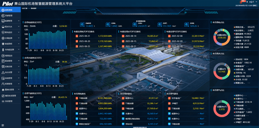 “雙碳”管理、配電監控、智能照明……在杭州機場智慧能源管理大平臺上,各項數據一目了然。該平臺基于信息和通信技術,建立感知體系與數據體系雙輪驅動模式,實現能碳管理、安全生產及應急響應的智能化管控。通過24小時不間斷監測、每15分鐘自動采集數據,平臺可自動發現異常并告警,大幅提高管理效能,實現年節水約32萬噸、節電90萬千瓦時、節氣1.5萬方,節省能耗支出約213萬元。杭州機場成為國內繼上海浦東機場、昆明長水機場之后,第三個通過碳管理體系認證的機場。